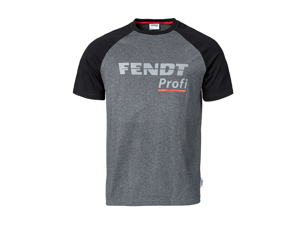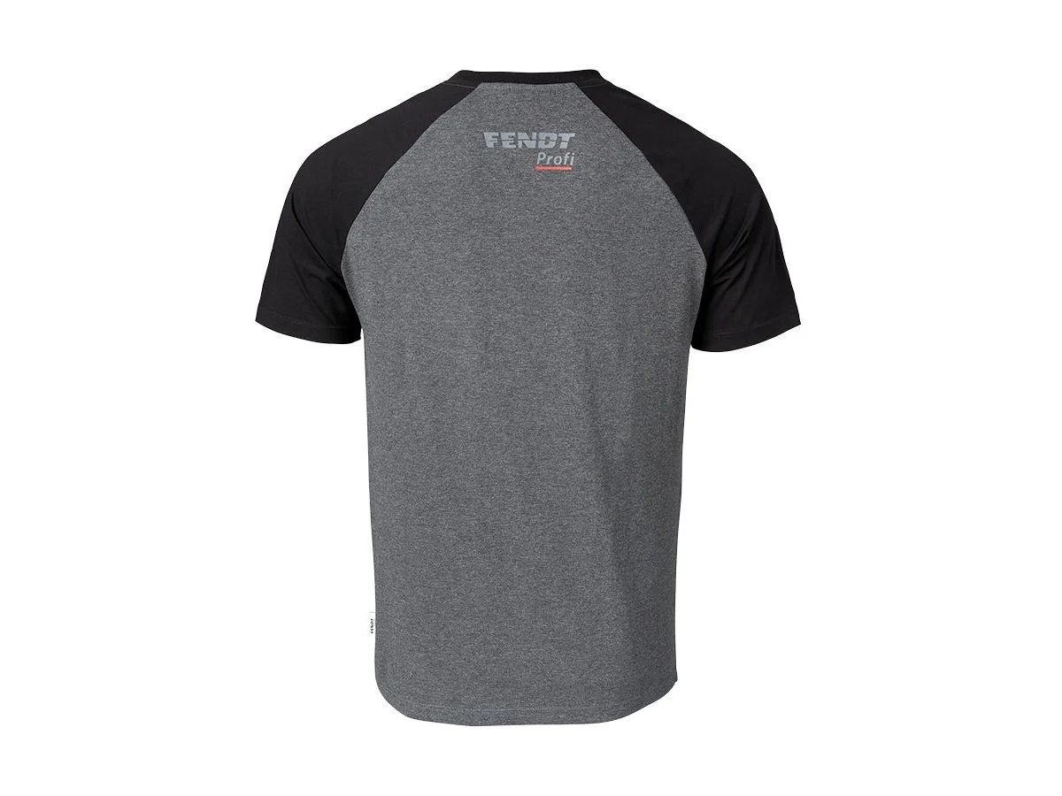 Two-tone casual round-neck t-shirt with raglan sleeves, reflective print on chest and back, reflective piping at the front, lined with a red neckband. Material: Black 100% cotton; grey melange 60% cotton, 40% polyester; 180 g/m².