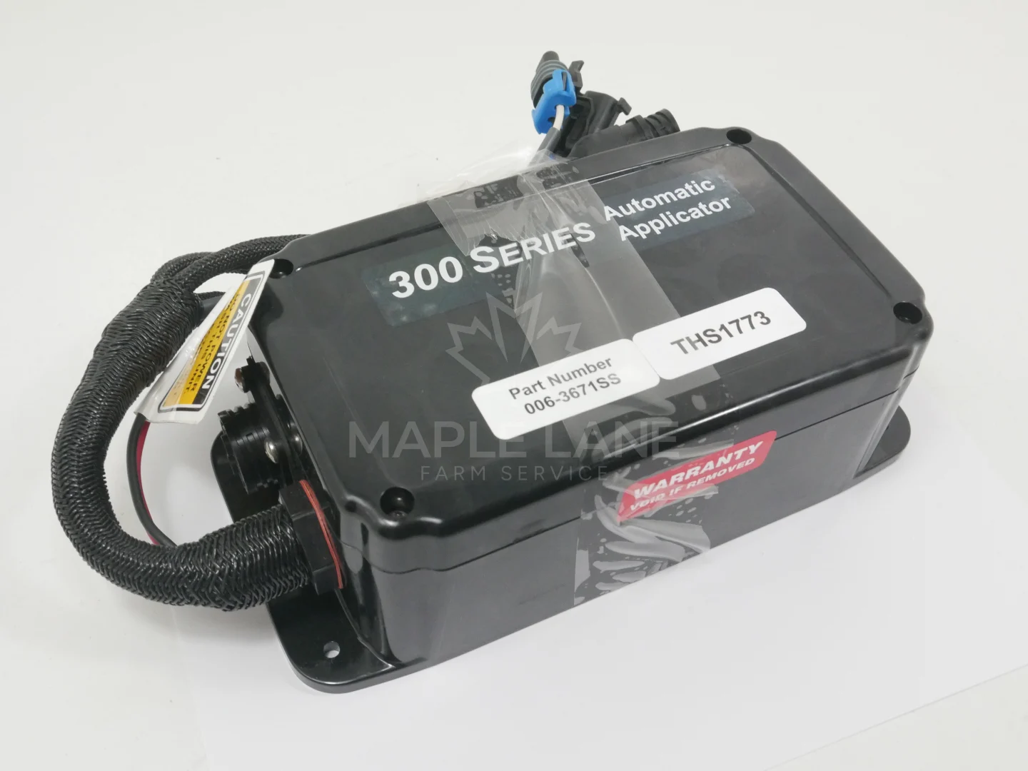 Hay preservative applicator controller for small square balers with Harvestec 300-series acid applicators.