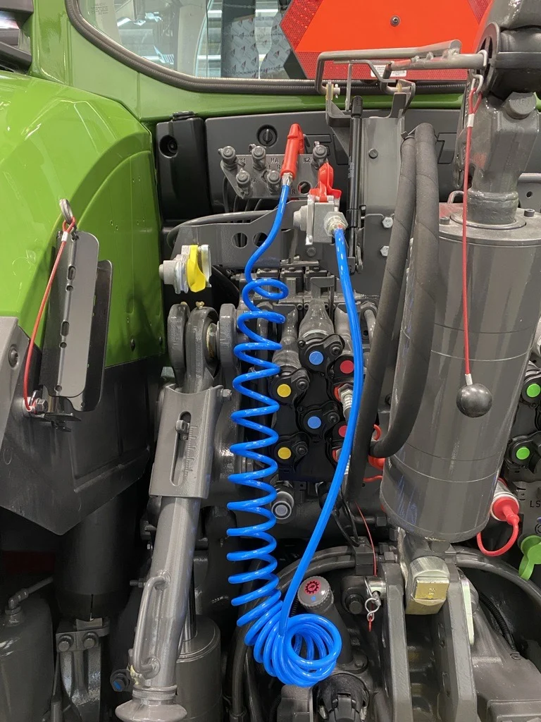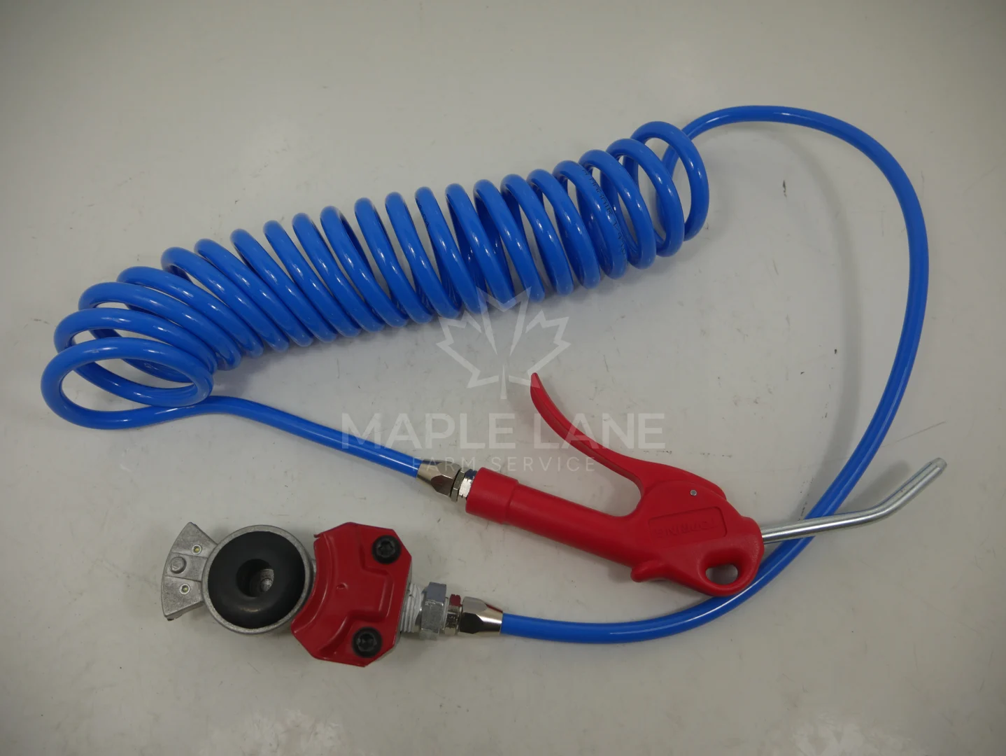 Air gun kit to fit into gladhand coupler. Fits Gladhands on most farm tractors. Air hose stretches to 15 feet.