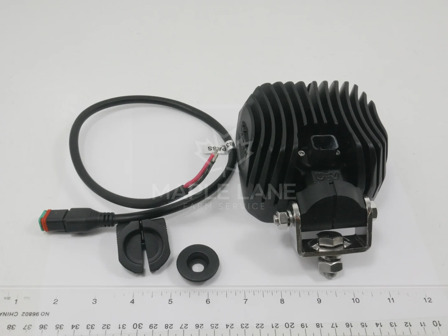 This light uses a male 2-pin Deutsch connector. It also comes with the plug and pigtail if your machine has a different plug.