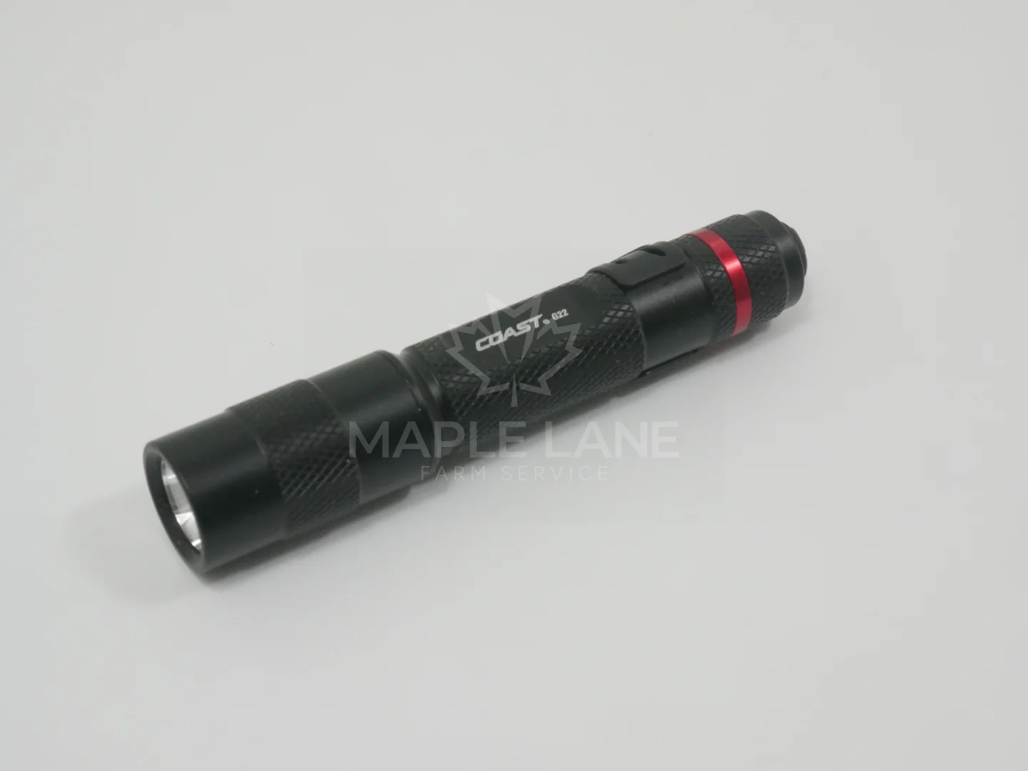 Coast G22 100-lumen pocketlight. Good quality light for mechanics and farmers. Has a bright centre spot beam and outside flood beam.
