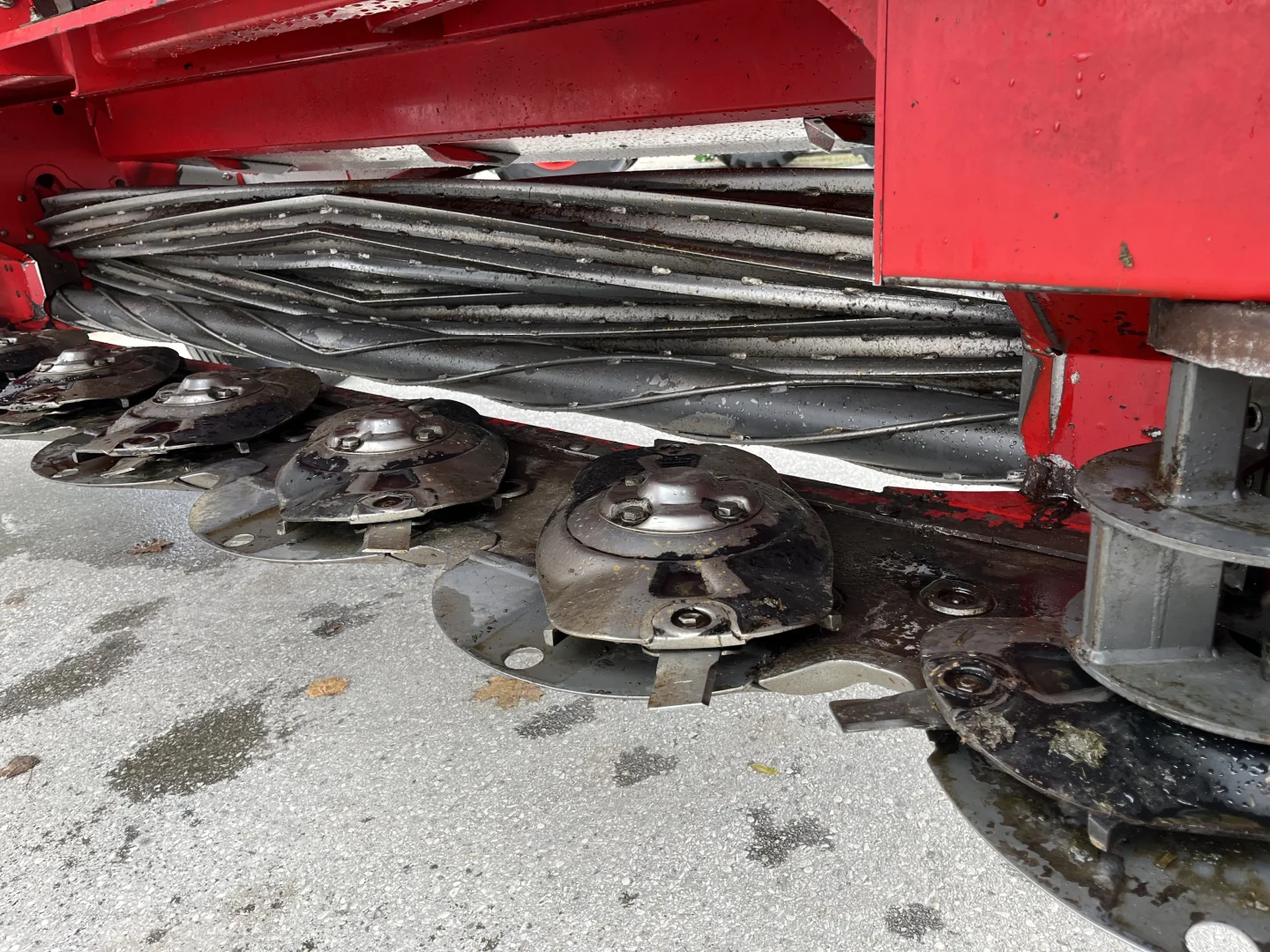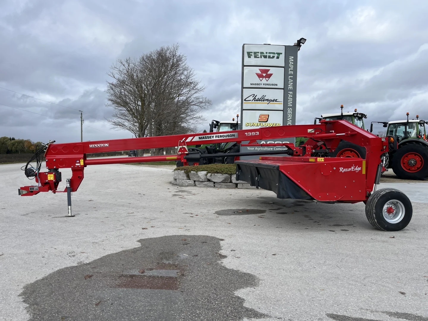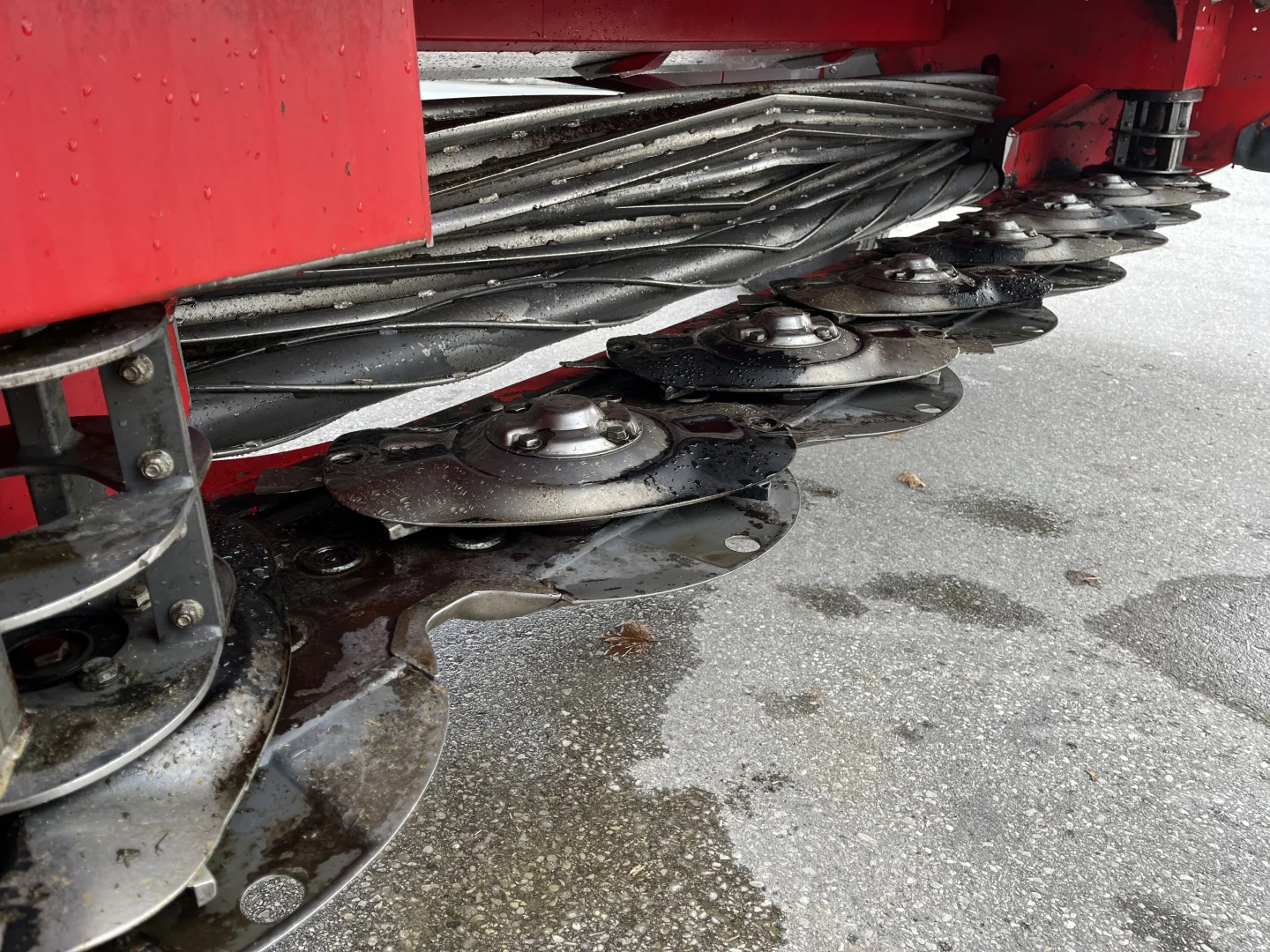13′ center pivot disc mower, RazorEdge welded one-piece cutterbed, quick blade change, steel-on-steel herringbone roller conditioners, hydraulic roll tension, drawbar swivel hitch, hydraulic header tilt.