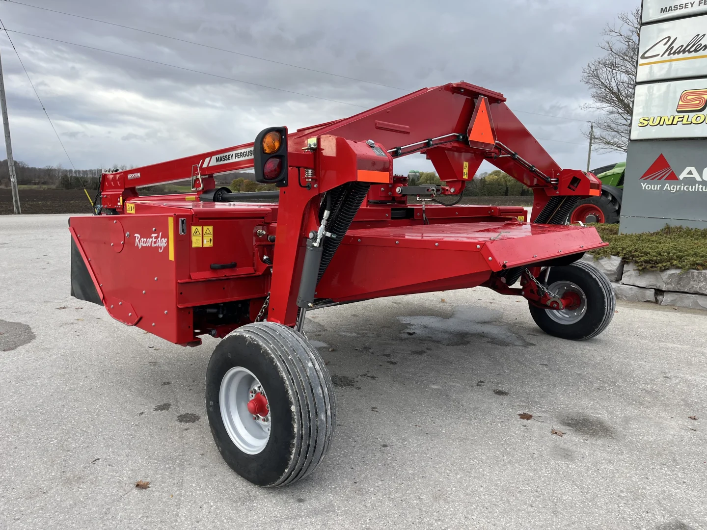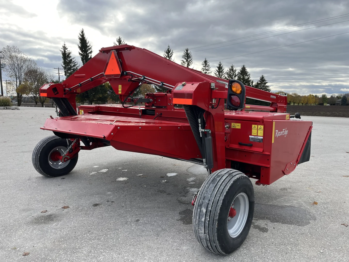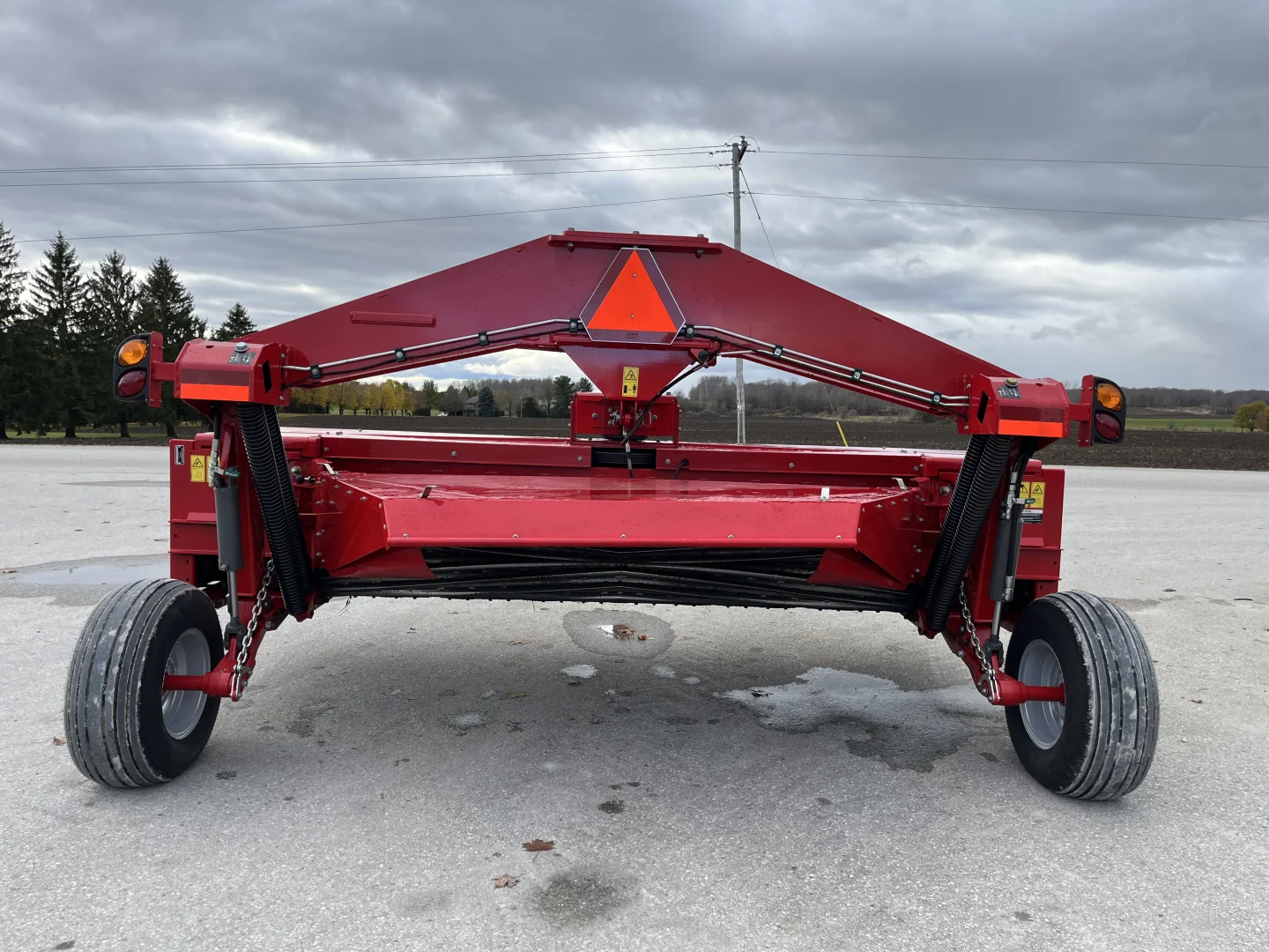 13′ center pivot disc mower, RazorEdge welded one-piece cutterbed, quick blade change, steel-on-steel herringbone roller conditioners, hydraulic roll tension, drawbar swivel hitch, hydraulic header tilt.