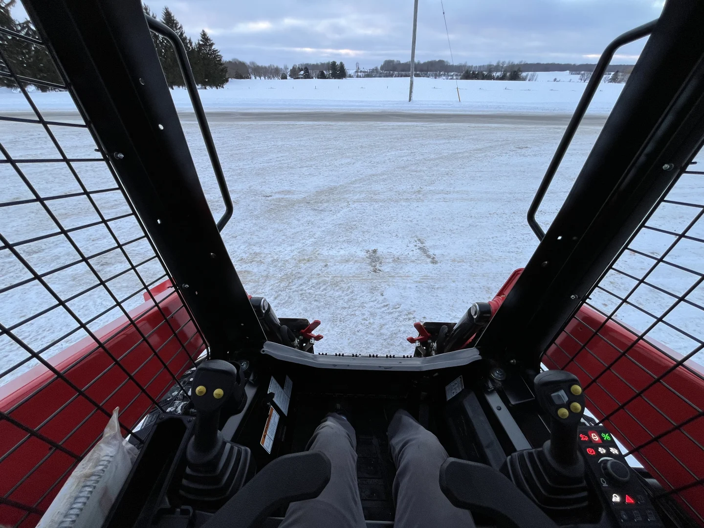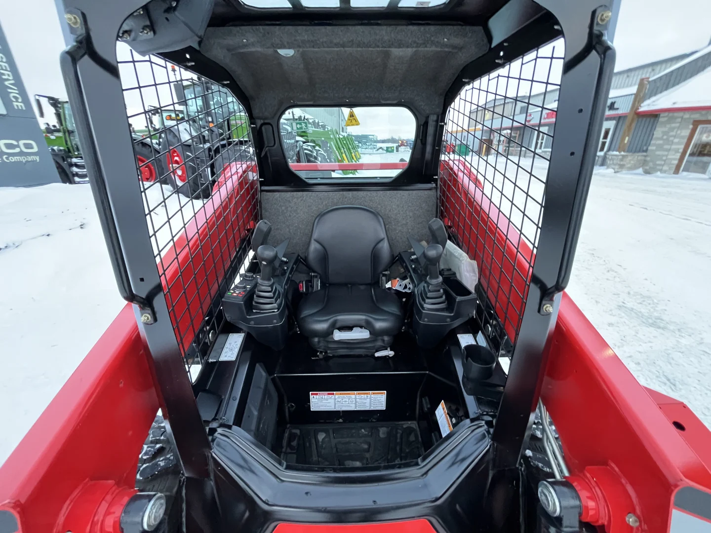 New old stock, open ROPS, 2-speed drive, joystick with ride control, manual quick-tach, regular flow front auxiliary hydraulics, 10.00×16.5 tires.