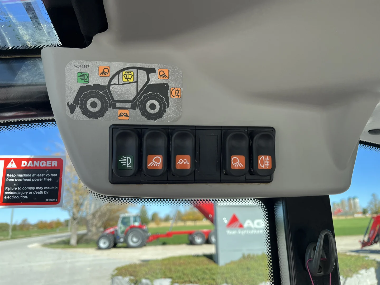Cab, heater & AC, 116HP Deutz engine, 2-speed hydrostatic transmission, boom suspension, continuous flow front auxiliary, hydraulic quick tach, 500/45R20 low profile tires.
