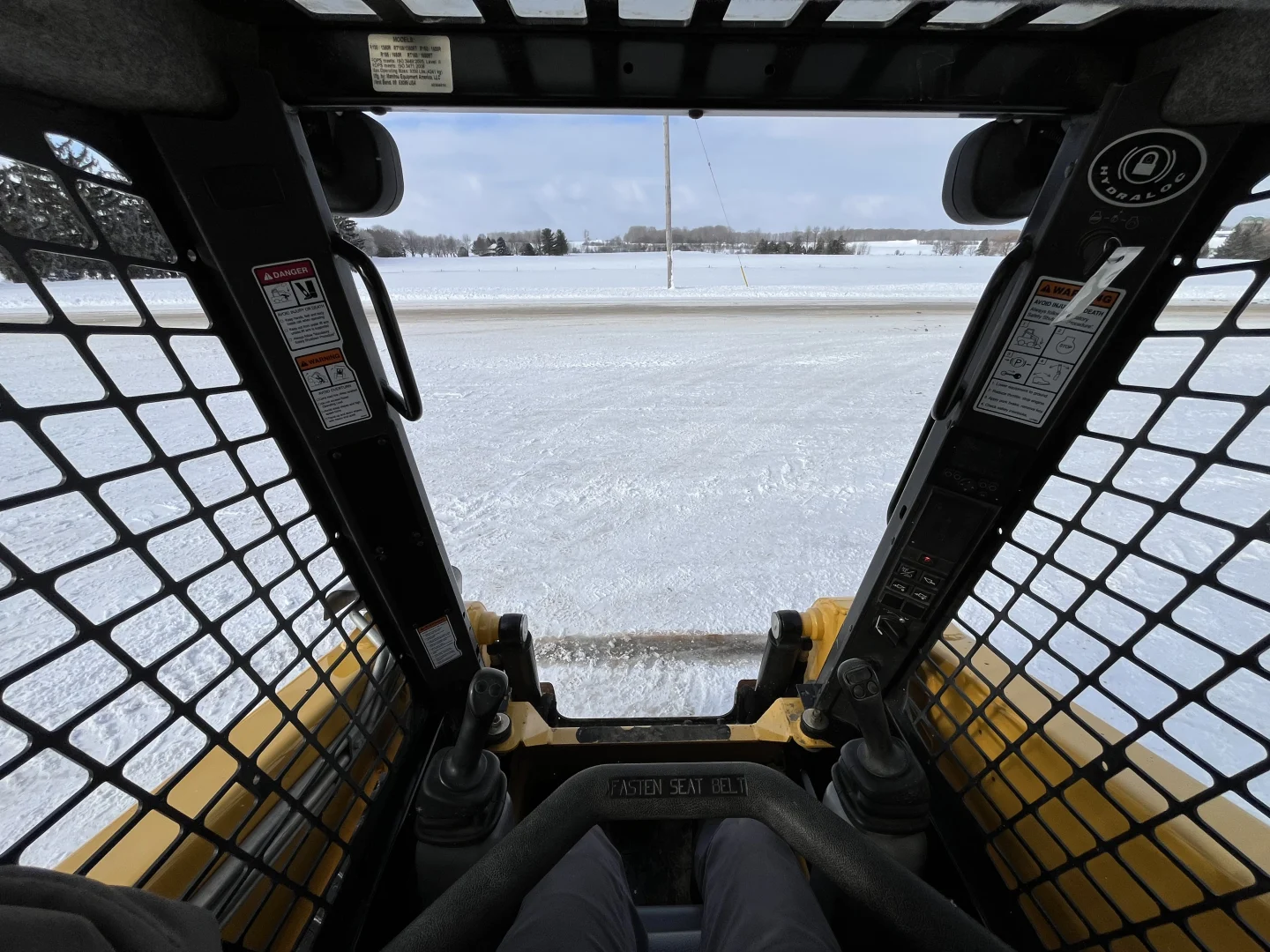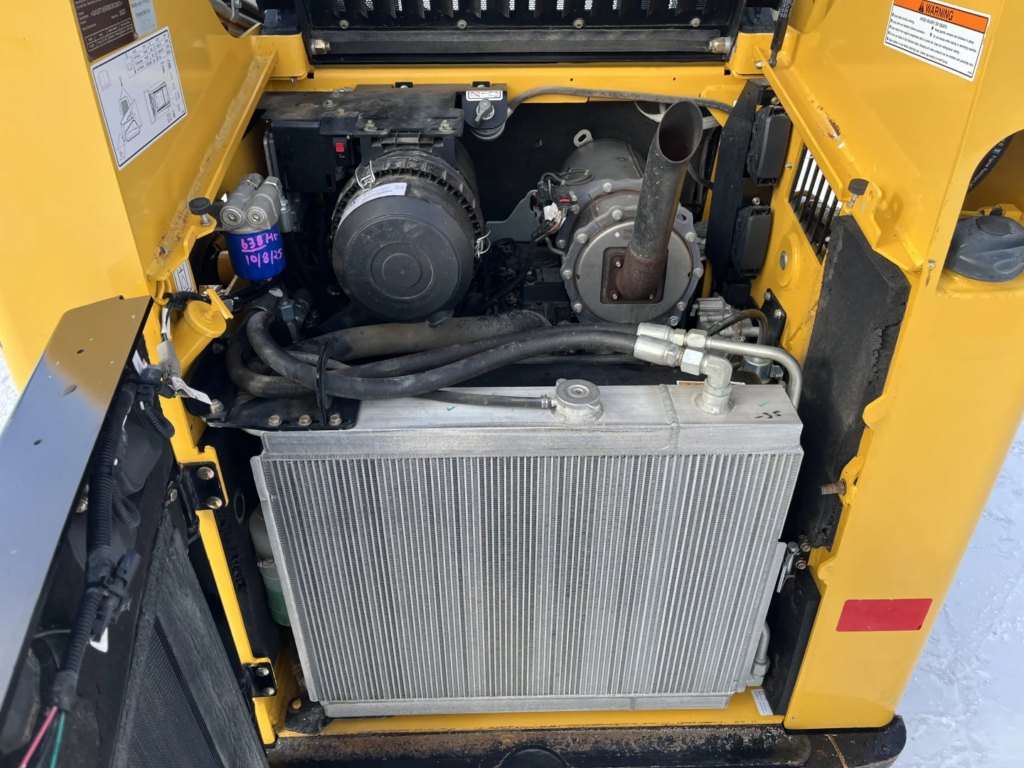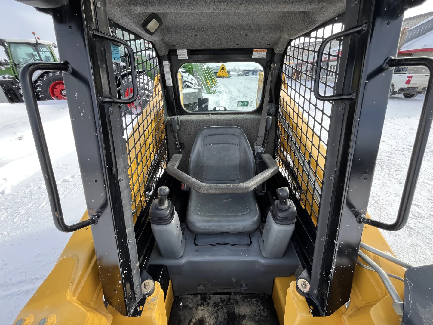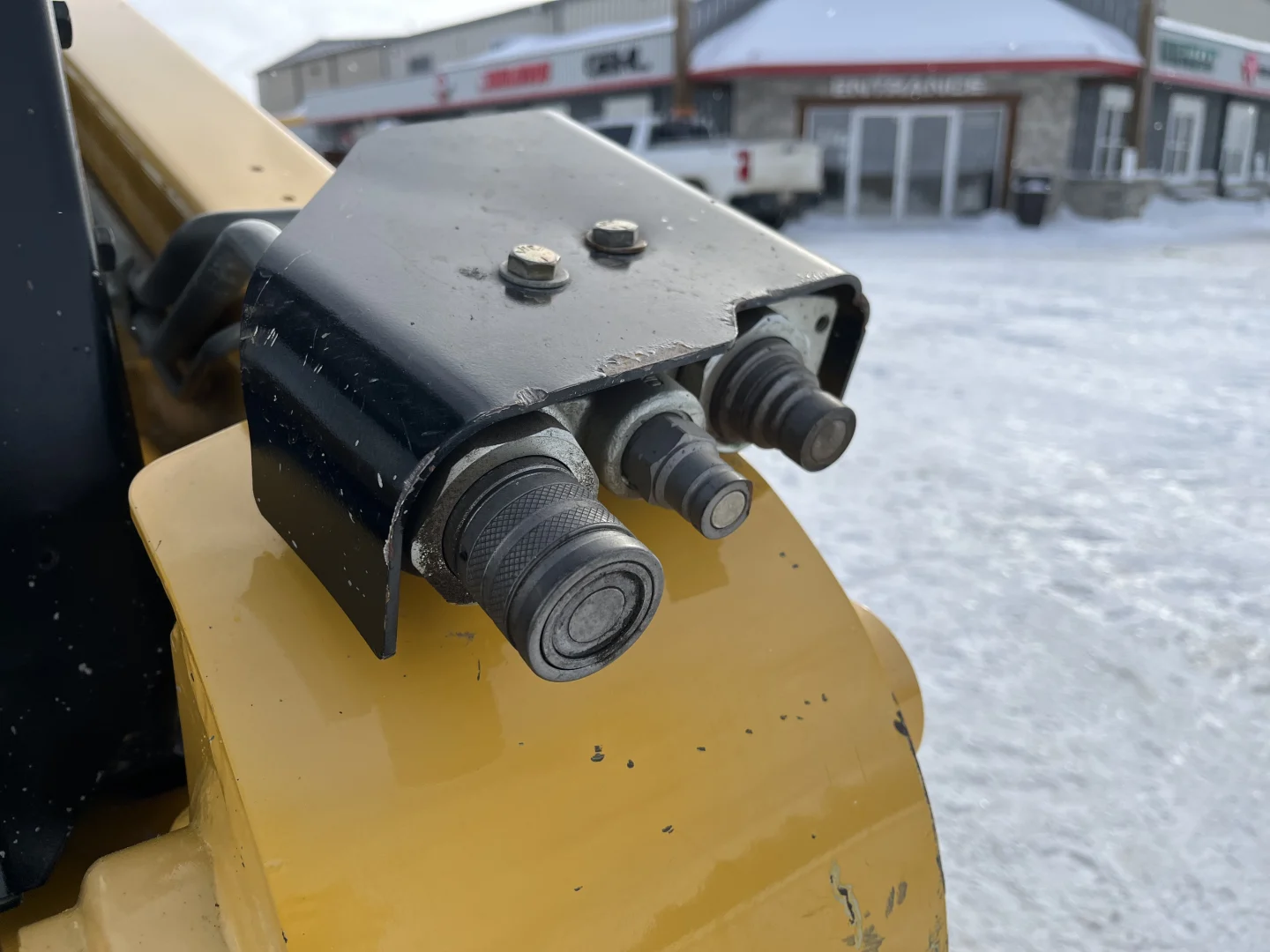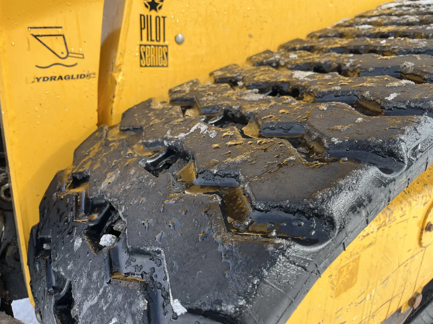 Open ROPS, joystick control with ride control, 2-speed drive, manual quick-tach, regular flow front hydraulics, 16″ all season tracks.