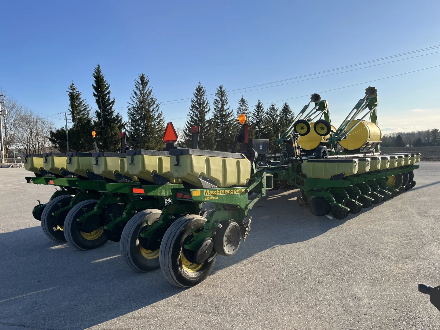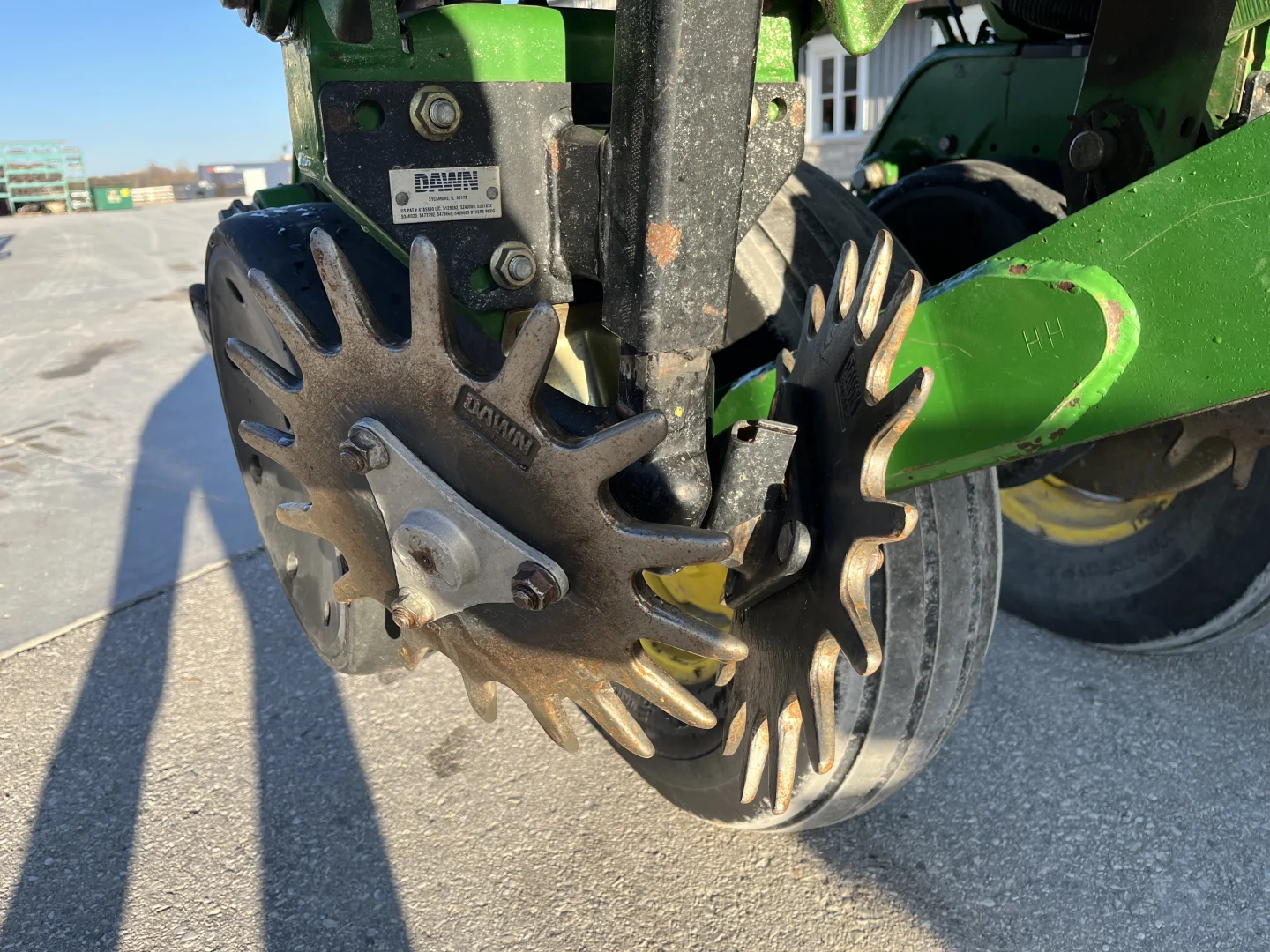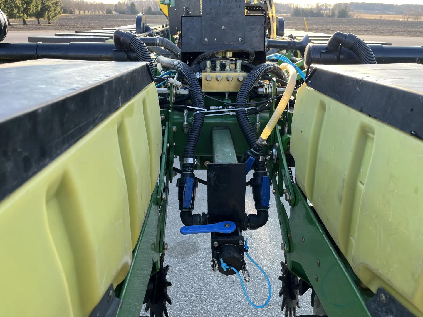 | 24 row 30″ planter, liquid fertilizer, 20/20 Air Force- row by row pneumatic down force, DAWN manually adjusted row cleaners, Precision E-set meters, Rinex swath control with true count air clutches, chain drive, hydraulic markers, rubber closing wheels, 20/20 Gen 2 monitor. | |