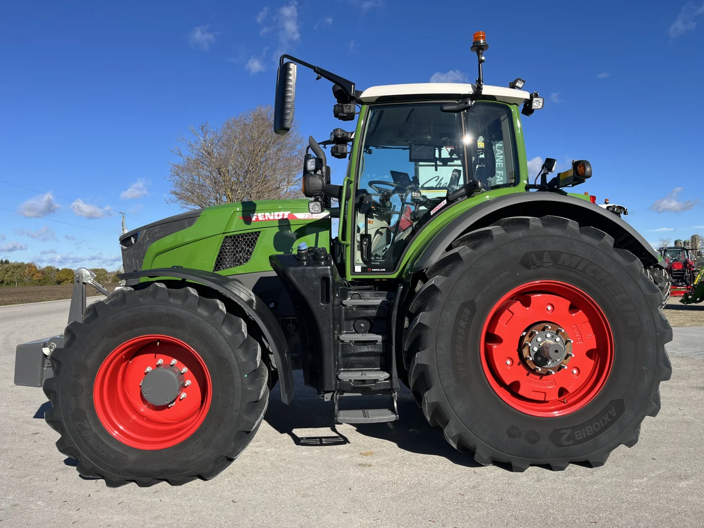 | New 2025 MY demo, Profi+, 50KPH Vario transmission, 220LPM hydraulic pump, 5 rear remotes, hydraulic & air trailer brakes, power beyond, front hitch & PTO, 2 front remotes, Full LED lighting, 3 point air cab suspension, 12″ terminal + 12″ roof terminal, cool box, automatic climate control, heated rear window, rear sunshade, cloth Evolution seat, infotainment with subwoofers, automatic park brake, hood & rear camera, powered mirrors, hydraulic top link, 600KG rear wheel weights, 1250KG front weight, VF600/70R30 front, VF650/85R38 rear, 3 year/3000 hour Fendt Goldstar warranty. We gladly serve customers in southern Ontario. If you’re located outside southern Ontario, we would be grateful if you contacted your local Fendt dealer about a new 728 instead of us. | |