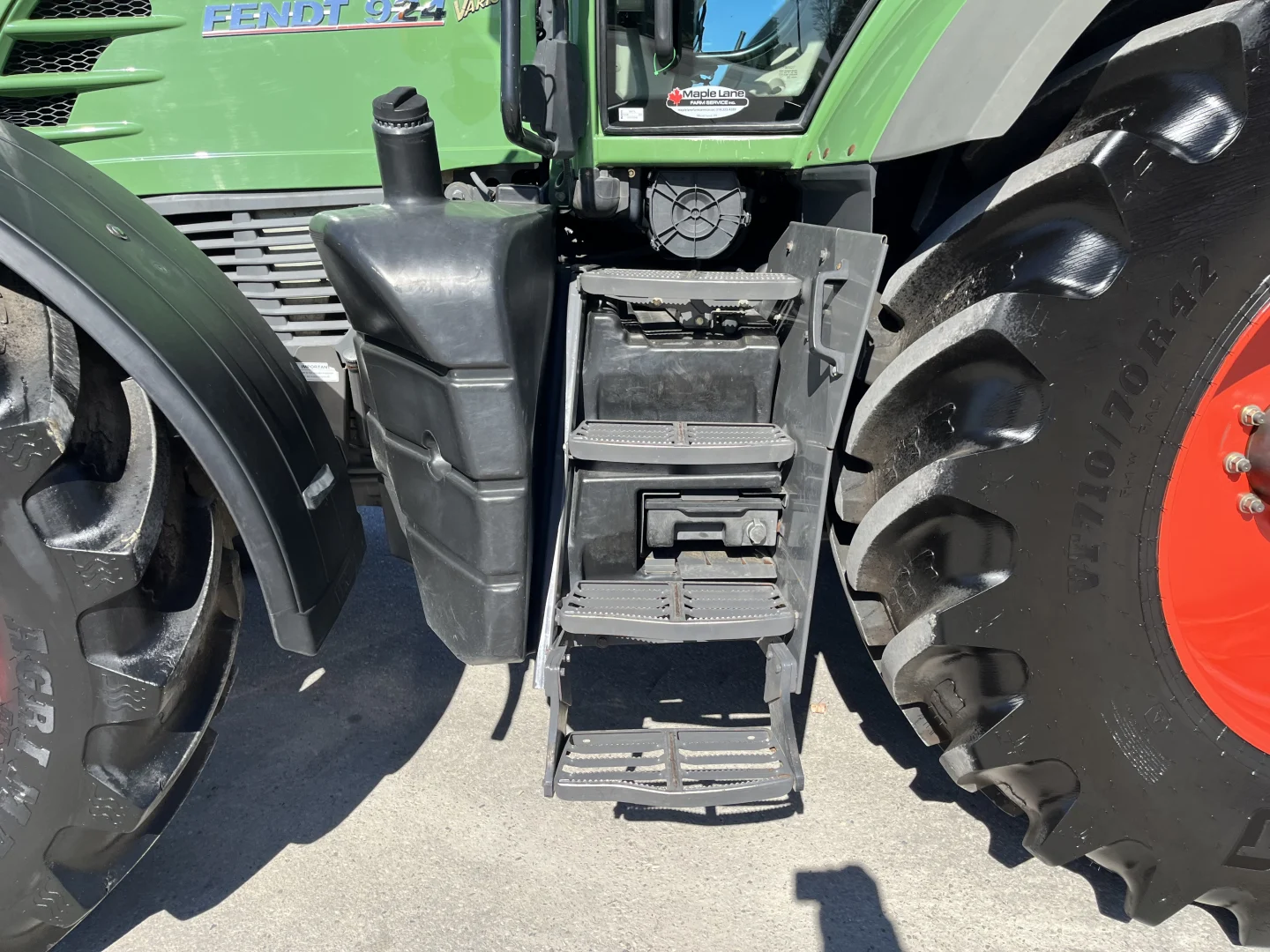 50kph Vario transmission, independent front axle suspension, VF710/70R42 and 600/65R34 tires, front hitch, 6 rear remotes, High volume hyd pump, hydraulic and pneumatic trailer brakes, air cab suspension, heated rear window, FM-750 Trimble guidance system. | |