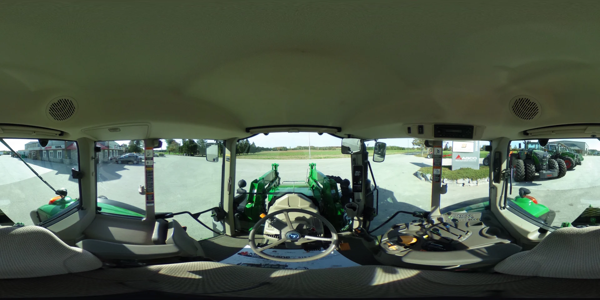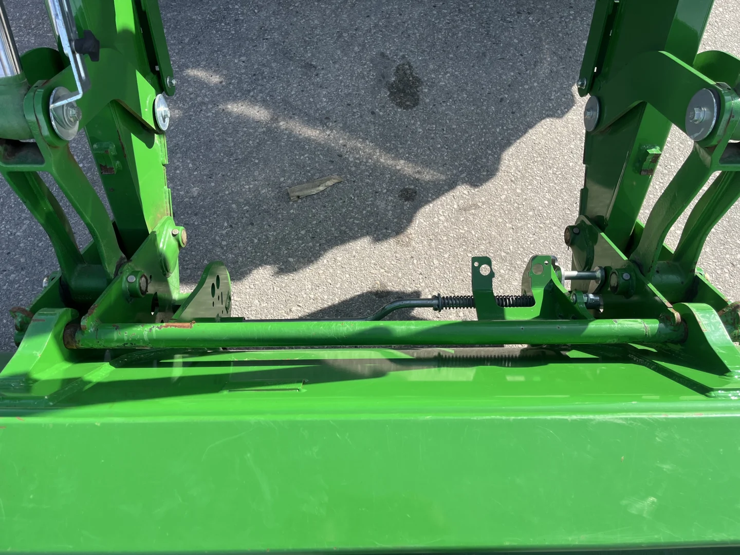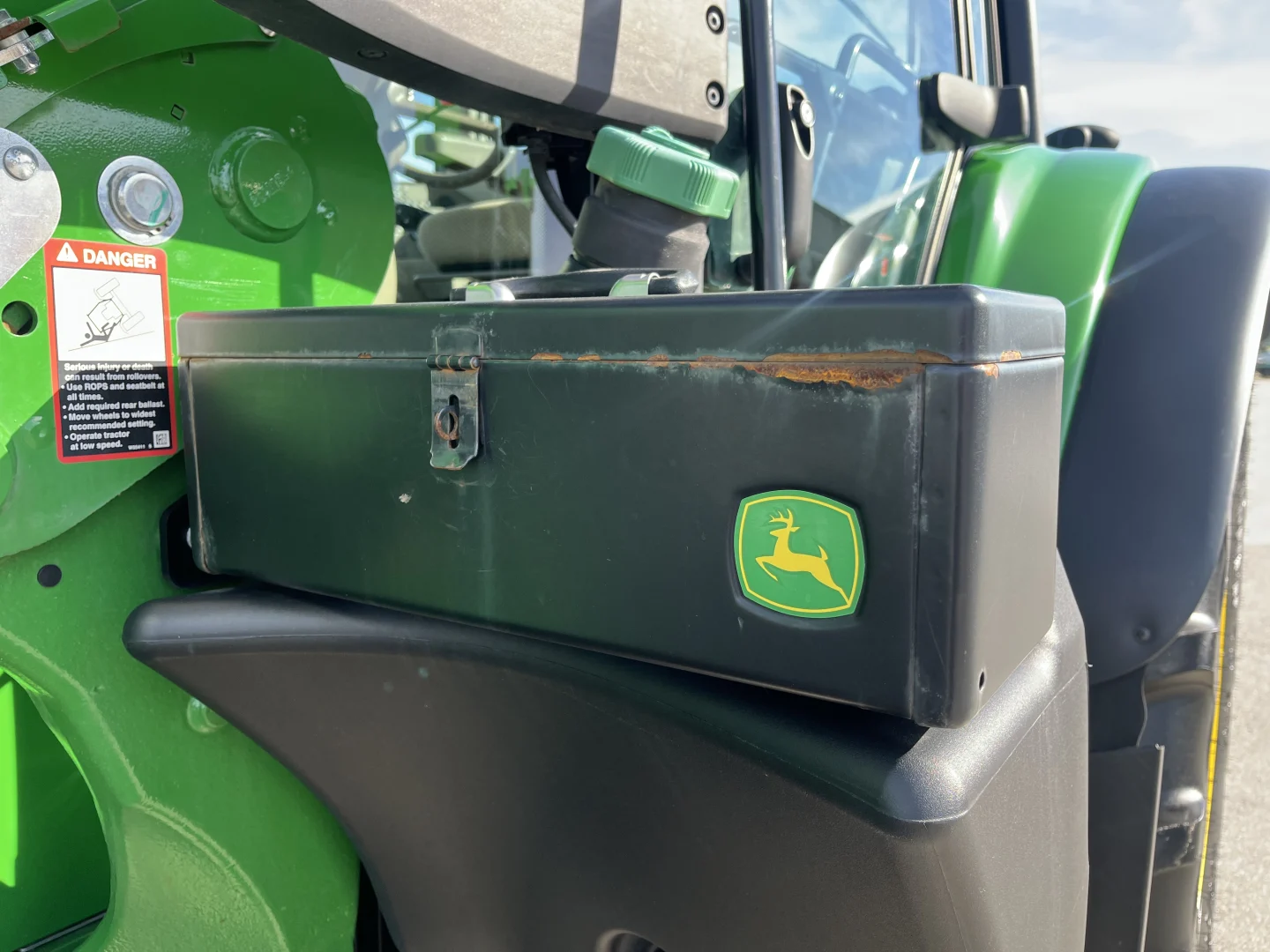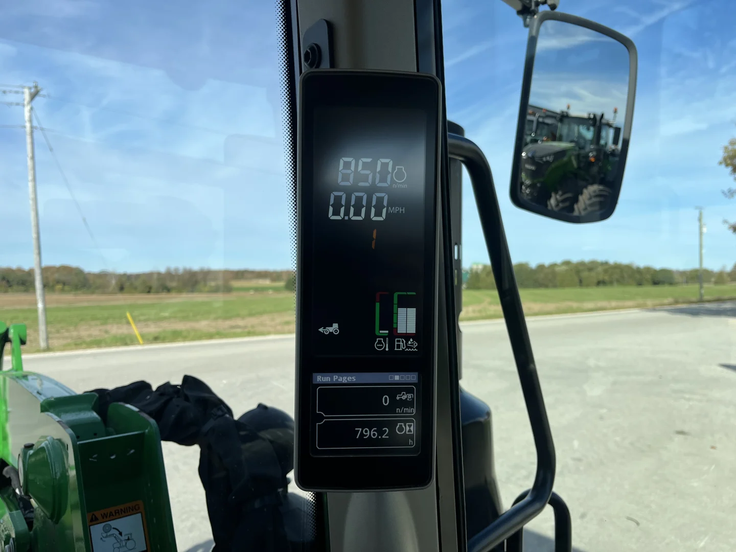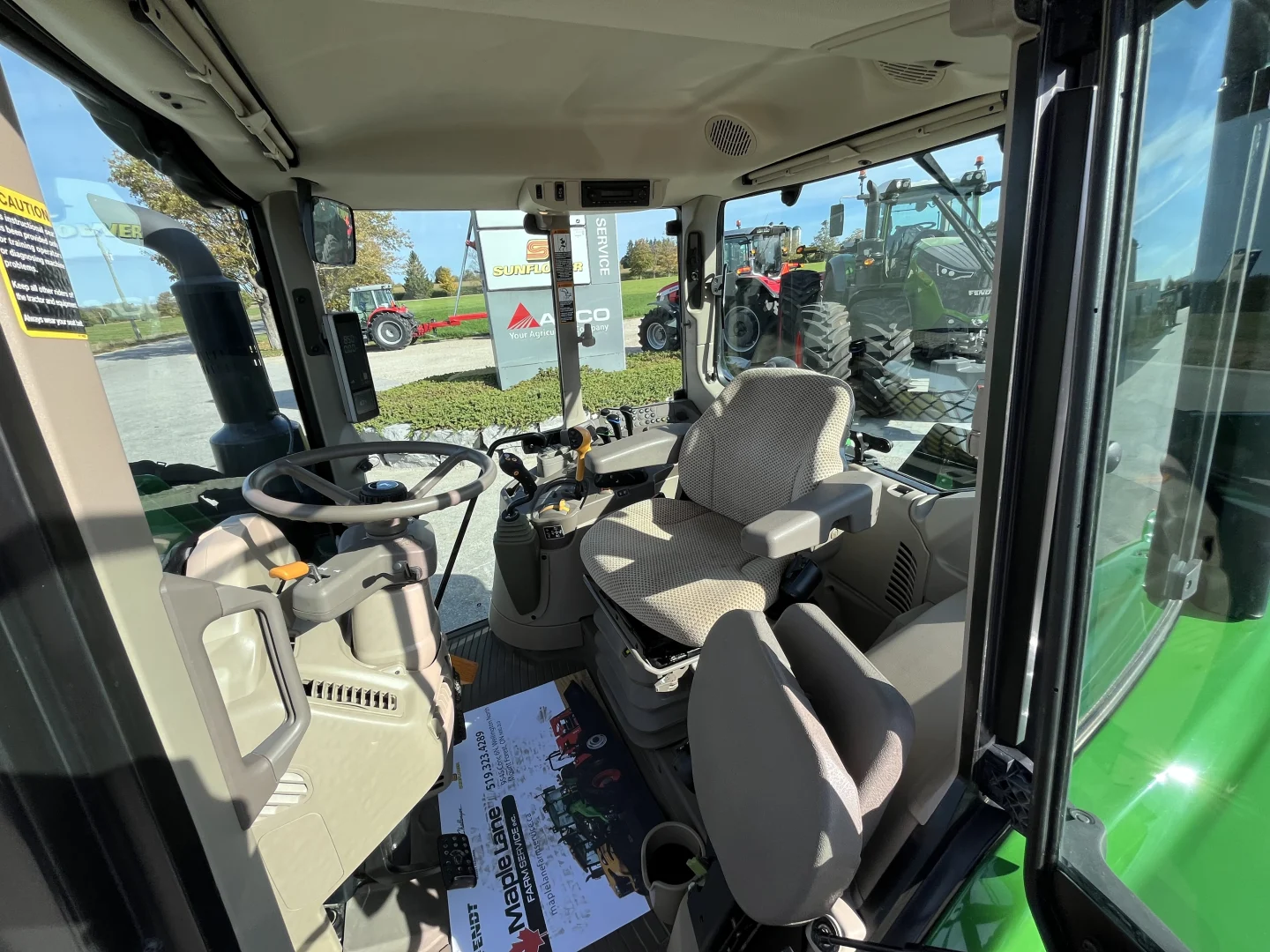 480/70R38 and 420/70R24 tires, 24-spd PowerQuad Plus powershift transmission, 3 remotes, JD600 self-leveling loader, 84″ bucket.