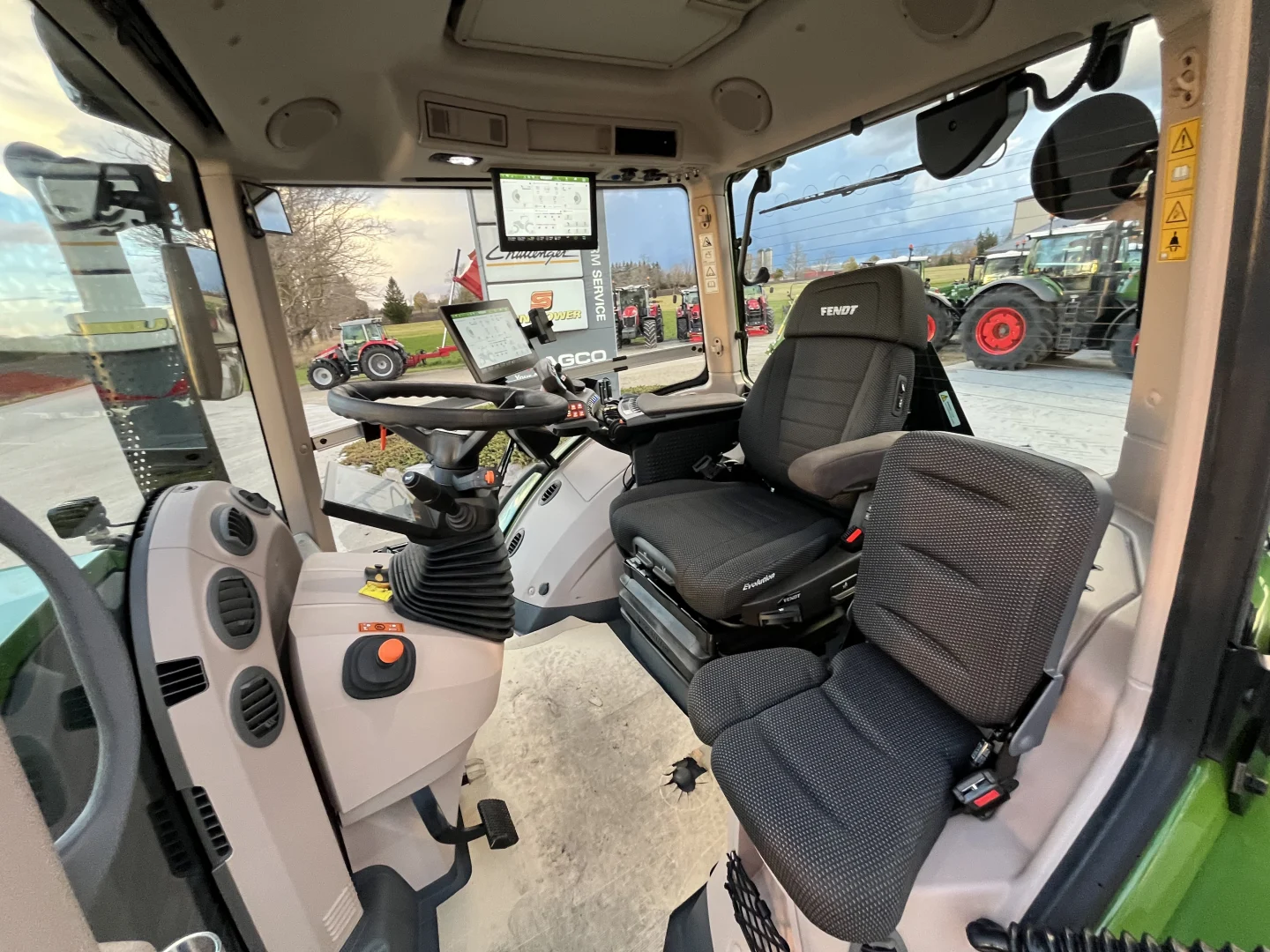 | New 2025 MY, Profi+, 50KPH Vario transmission, 113.5GPM dual hydraulic pump, 6 rear remotes, hydraulic & air trailer brakes, exhaust brake, power beyond, front hitch, front PTO, 1 front remote, 2 point air cab suspension, side wiper, LED lighting, 12″ terminal + 12″ roof terminal, cloth Evolution seat, automatic climate control, heated rear window, front, rear, RH sunshades, infotainment, automatic park brake, hydraulic top link, 650KG rear wheel weights, VF650/65R34 front, VF750/70R44 rear, 3 year/3000 hour Fendt Goldstar warranty. We gladly serve customers in southern Ontario. If you’re located outside southern Ontario, we would be grateful if you contacted your local Fendt dealer about a new 936 instead of us. | |