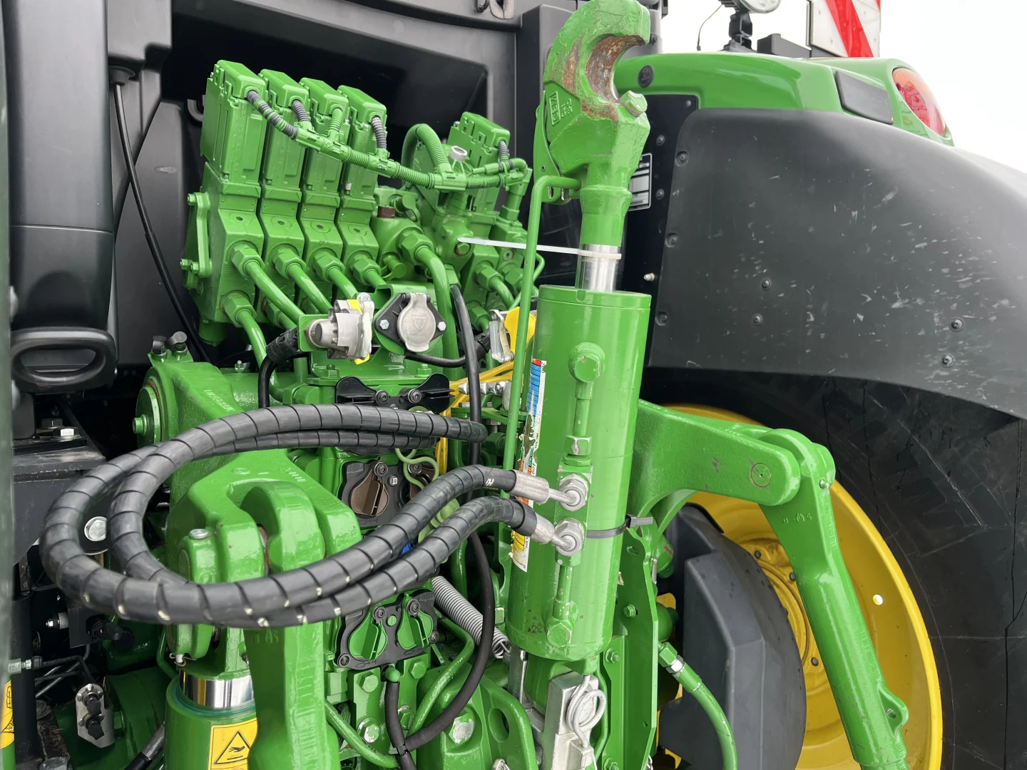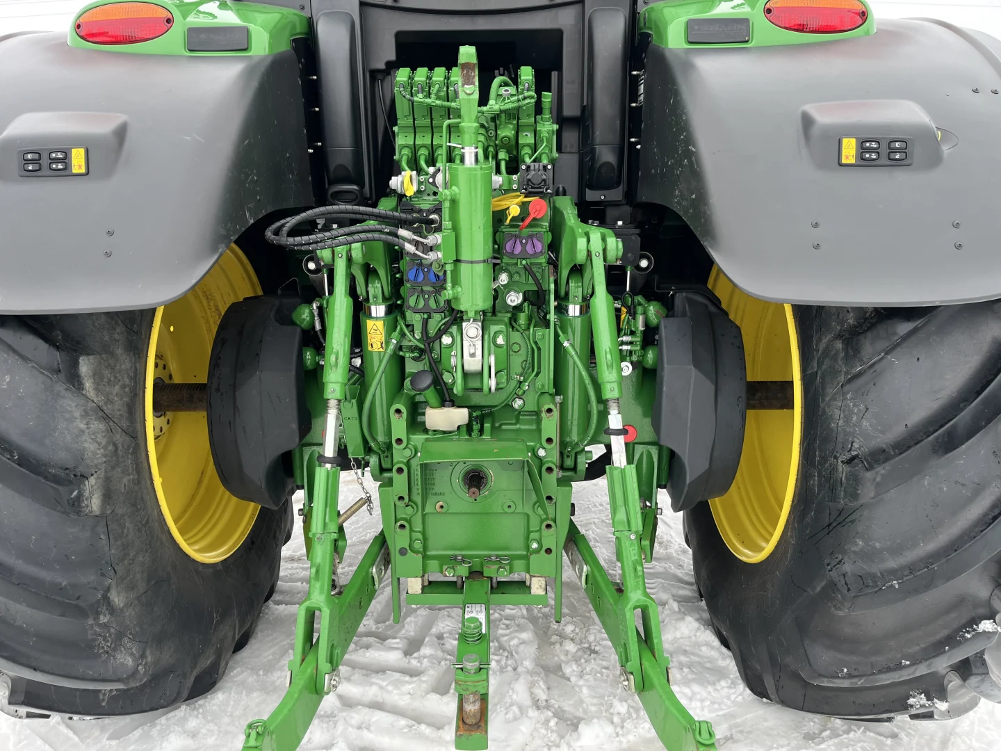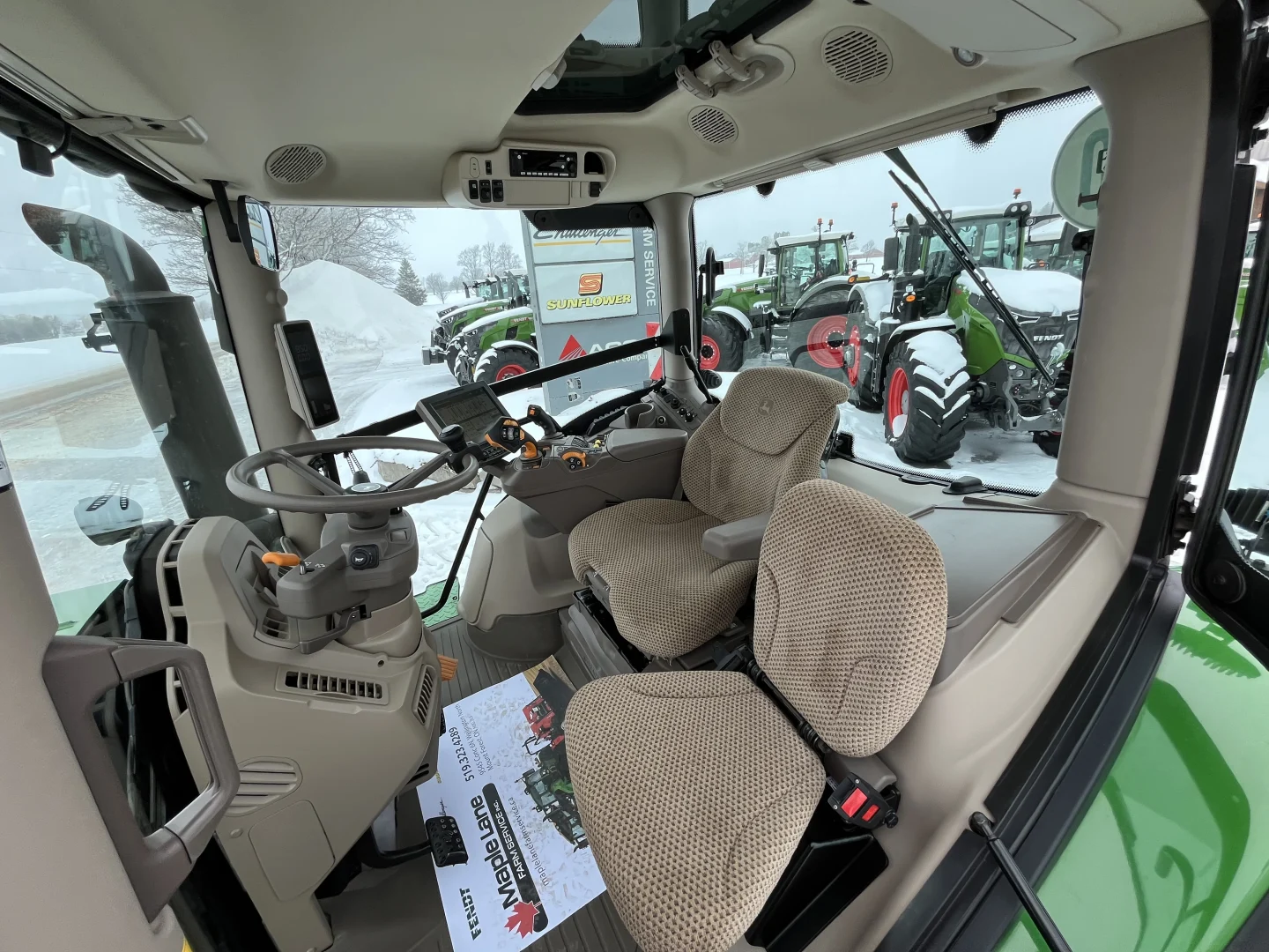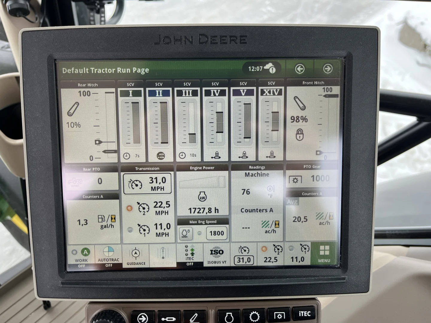 50 km/h IVT transmission, Command Pro, Michelin tires- 710/70R42 rear, 600/70R30, front 3 point hitch, front PTO, 5 rear valves, cab suspension, LED lights, air and hydraulic trailer brakes, hydraulic toplink, powered and heated mirrors, AutoTrac and Section Control unlocked