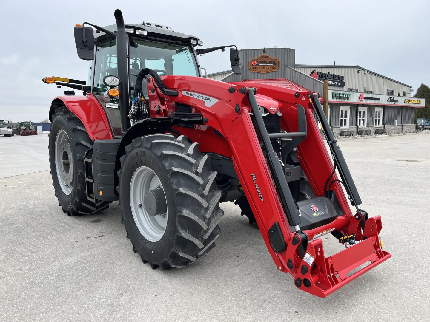 New MY 2026, 50KPH Dyna-VT, 190 LPM hydraulic pump, power beyond, hydraulic trailer brakes, 4 rear remotes, Datatronic 5 display, deluxe seat, LED light package, powered mirrors, mechanical cab suspension, suspended front axle, 250KG wheel weights, FL4327 loader with 3rd function, 540/65R30 front, 650/65R42 rear. We gladly serve customers in southern Ontario. If you’re located outside southern Ontario, we would be grateful if you contacted your local MF dealer about a new 7S.180 instead of us.